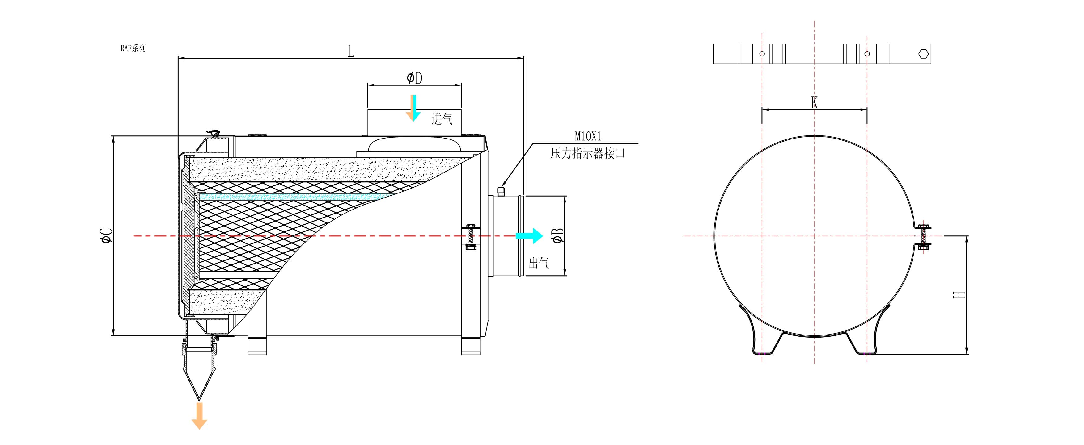| L (Länge) | K (Montagelochabstand) | H | Φc. (Durchmesser) | Φb. (Auslassrohrdurchmesser) | ΦD. (Einlassrohrdurchmesser) | hauptsächlich | Sicherheit | ||||